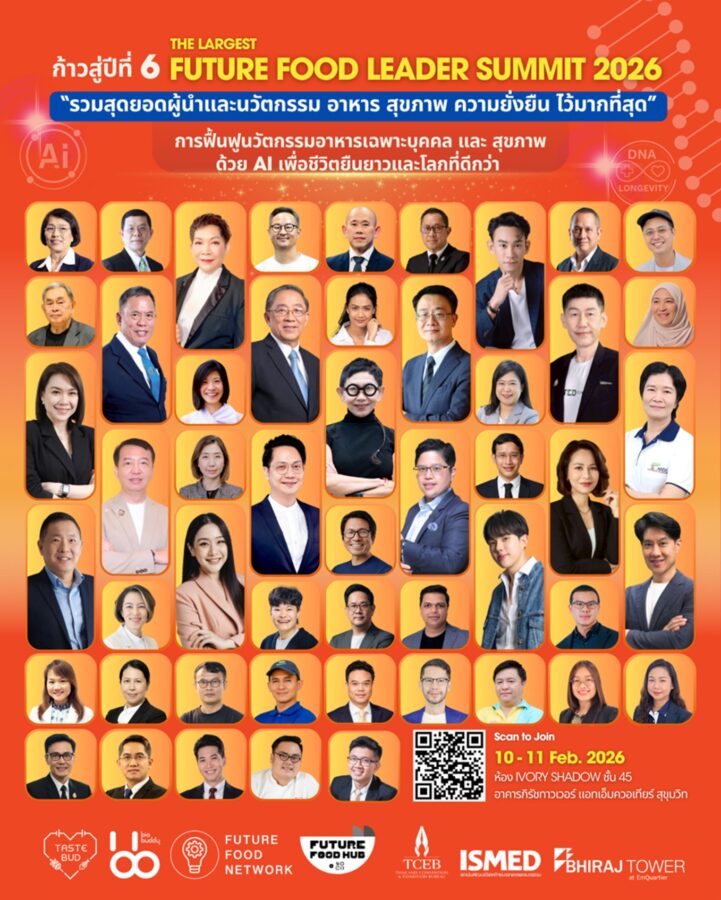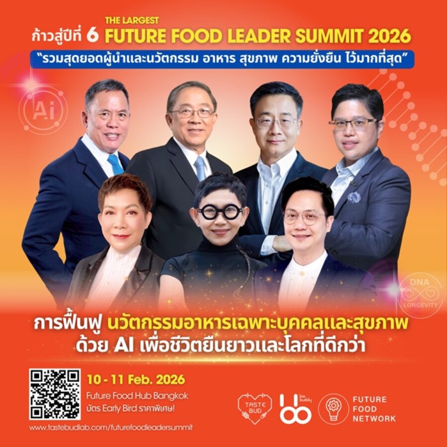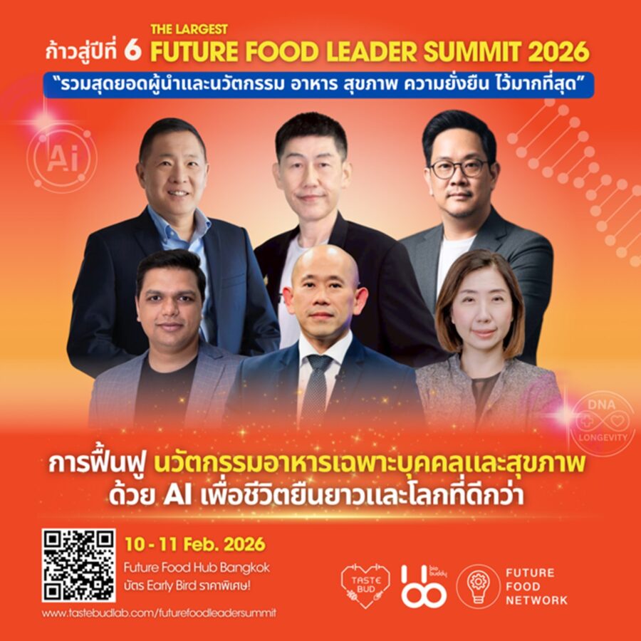ก้าวสู่ปีที่ 6 ของ Future Food Leader Summit 2026 มุ่งขับเคลื่อนการฟื้นฟูนวัตกรรมอาหารเฉพาะบุคคลและสุขภาพ ด้วย AI และ Bio Agri Food Tech “เพื่อชีวิตที่ยืนยาวบนโลกที่พัฒนาอย่างยั่งยืน”