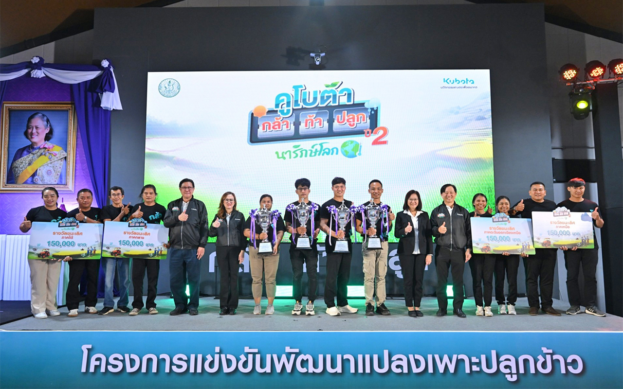 สยามคูโบต้า และ กรมส่งเสริมการเกษตร ปั้นต้นแบบนักพัฒนาแปลงปลูกข้าวลดโลกร้อน ประกาศผลทีมผู้ชนะคว้ารางวัลถ้วยพระราชทานฯ “คูโบต้า กล้า ท้า ปลูก” ปี 2 ชูนวัตกรรมปฏิทินการเพาะปลูก ยกระดับเกษตรไทยสู่ Smart Farming