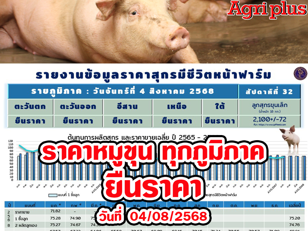ราคาหมูขุน ทุกภูมิภาค ยืนราคา